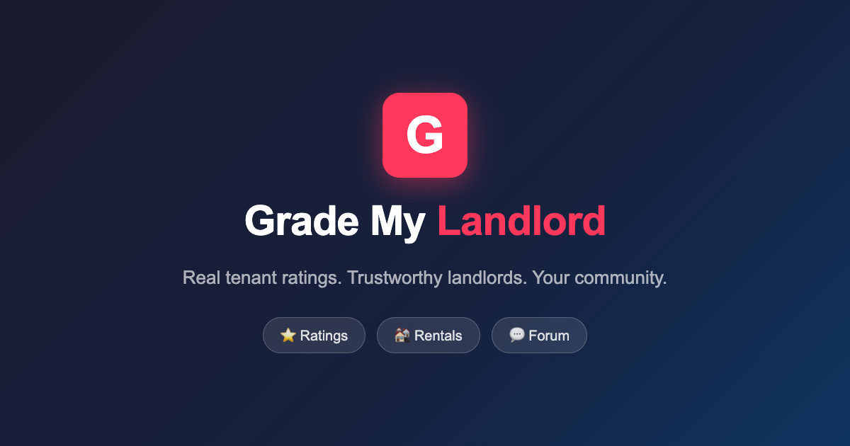 Grade My Landlord exists to give renters a voice. Finding a place to live is one of the most important decisions you'll make — and until now, there was no reliable way to know what kind of landlord you were signing up with before it was too late.